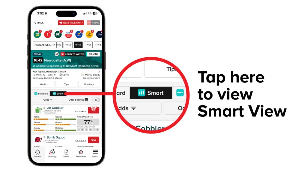 Once your app is installed, click on your chosen racecard and select the Smart View tab as shown in the image below.
